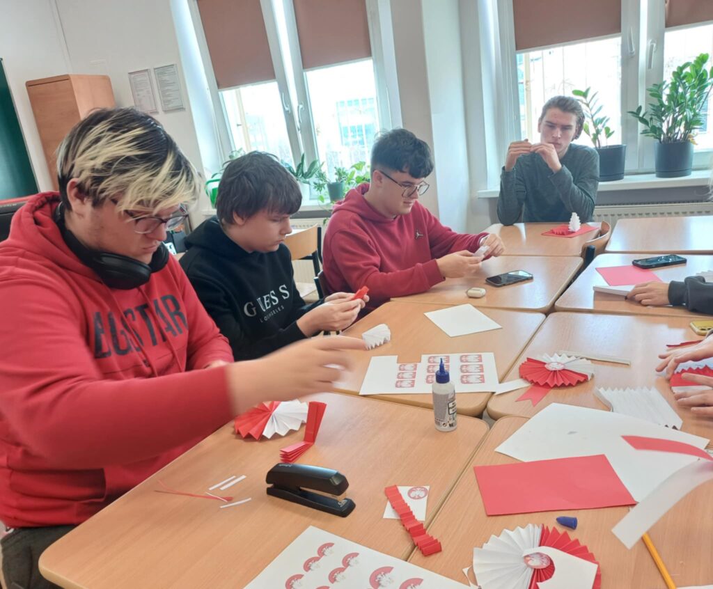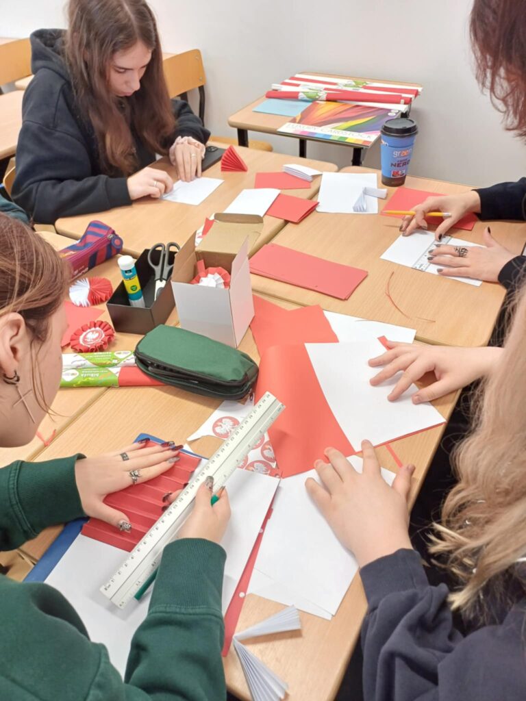 06.11.2025W związku ze zbliżającym się Narodowym Świętem Niepodległości, w naszej szkole odbyły się zajęcia poświęcone kształtowaniu postaw patriotycznych. W ramach edukacji obywatelskiej słuchacze przygotowali biało-czerwone kotyliony, którymi ozdobiono sale lekcyjne i szkolne korytarze. Podczas zajęć przypomniano znaczenie symboli narodowych oraz zasady właściwego postępowania wobec nich. Wspólnie przypomnieliśmy sobie znaczenie naszych symboli narodowych oraz uczyliśmy się z szacunkiem składać flagę Polski. Takie chwile uczą, że patriotyzm to nie tylko pamięć o przeszłości, ale także troska o wspólne jutro.
